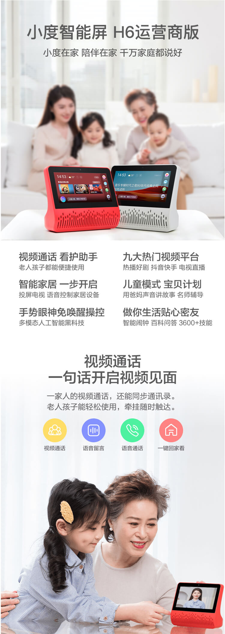 产品名称: 小度在家 智能屏 H6运营商版